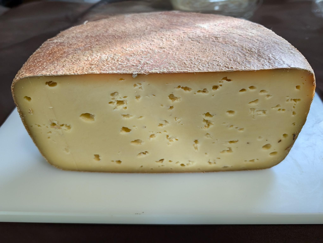 Formaggio a pasta dura, stagionato ca. 10 mesi, dal gusto saporito.