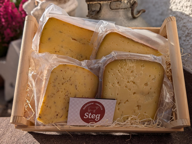 Un assaggio di 4 formaggi a un prezzo piu conveniente. Sono contenuti i formaggi: Steger, Pachler Zottl, Hinterwippmer e Sarner Scharte